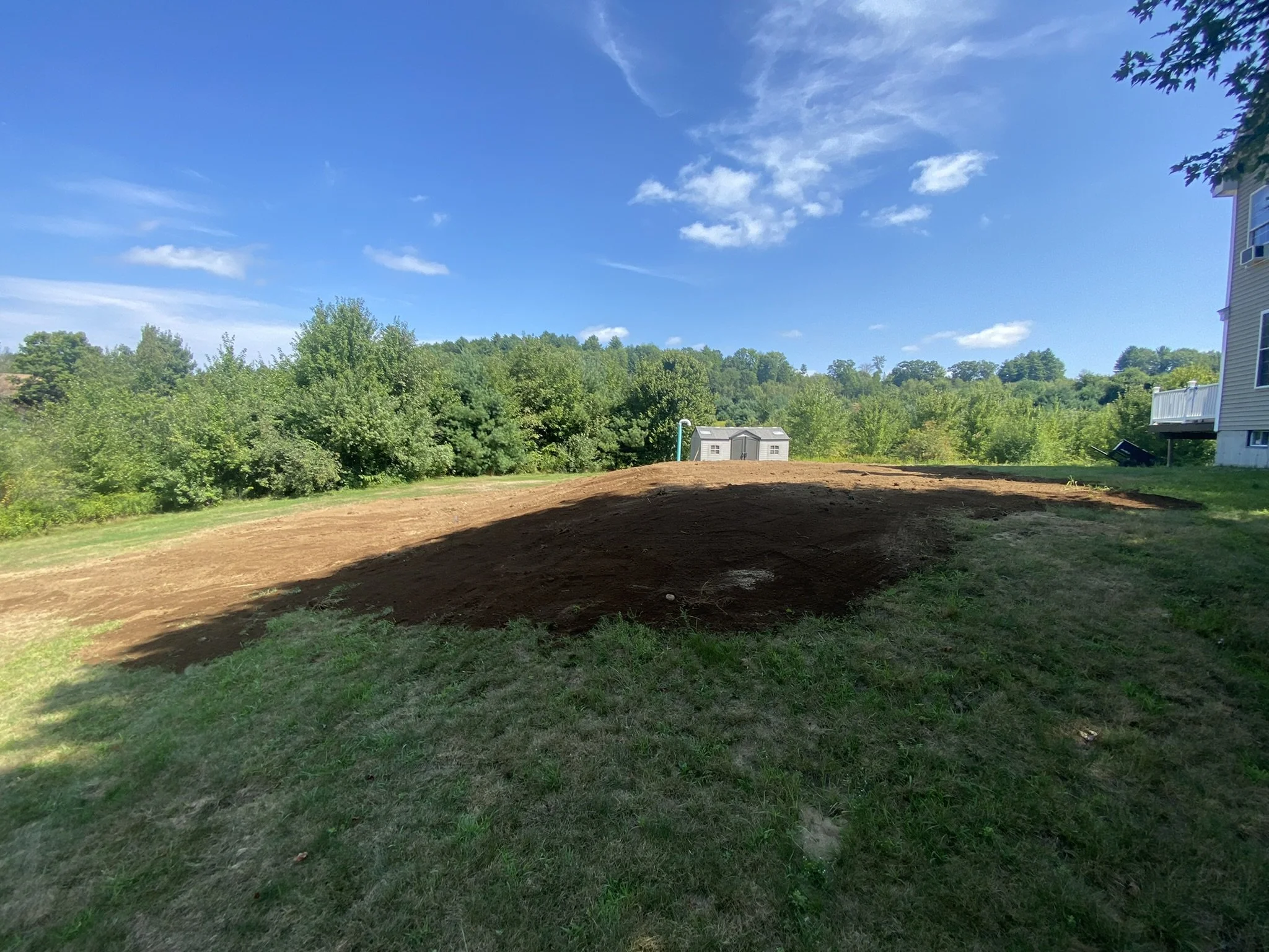 Seeding progression. It is important to establish vegetation on a completed system to prevent erosion. You can count on us to see your system replacement through from start to finish.